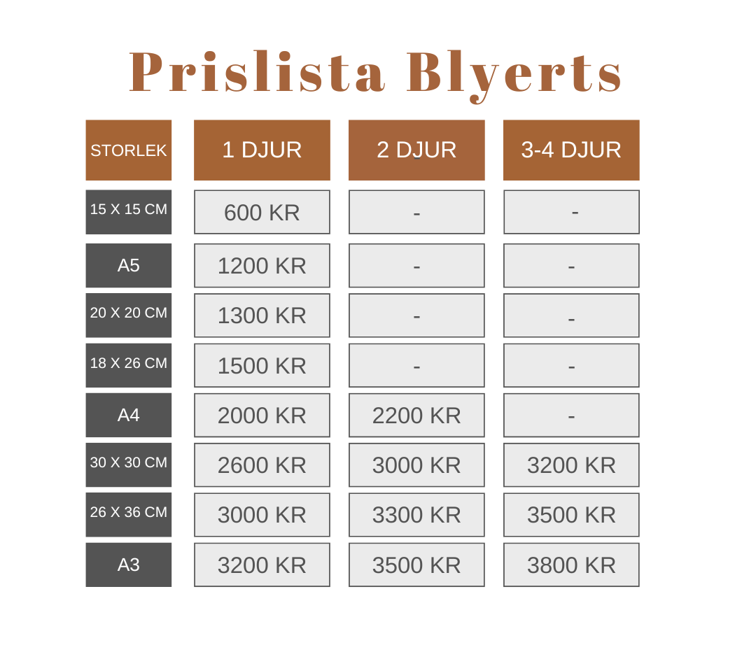 Kontakta mig med dina referensbilder och vilken storlek du vill ha. Skriv även om du har några funderingar.